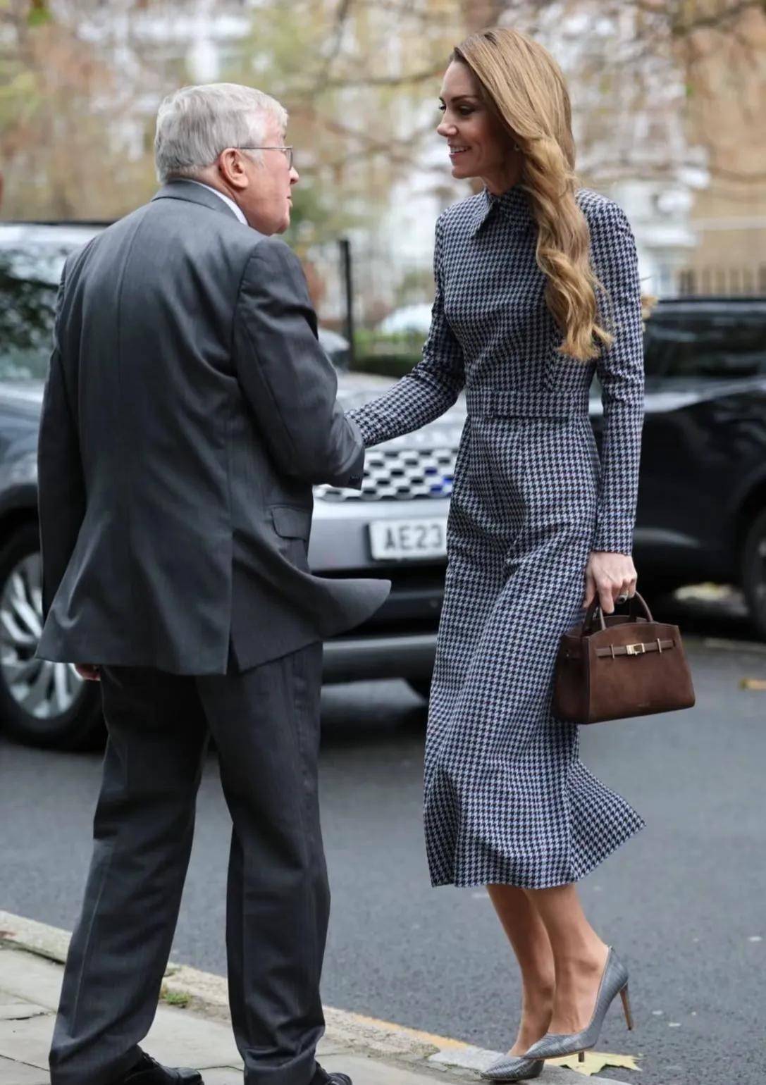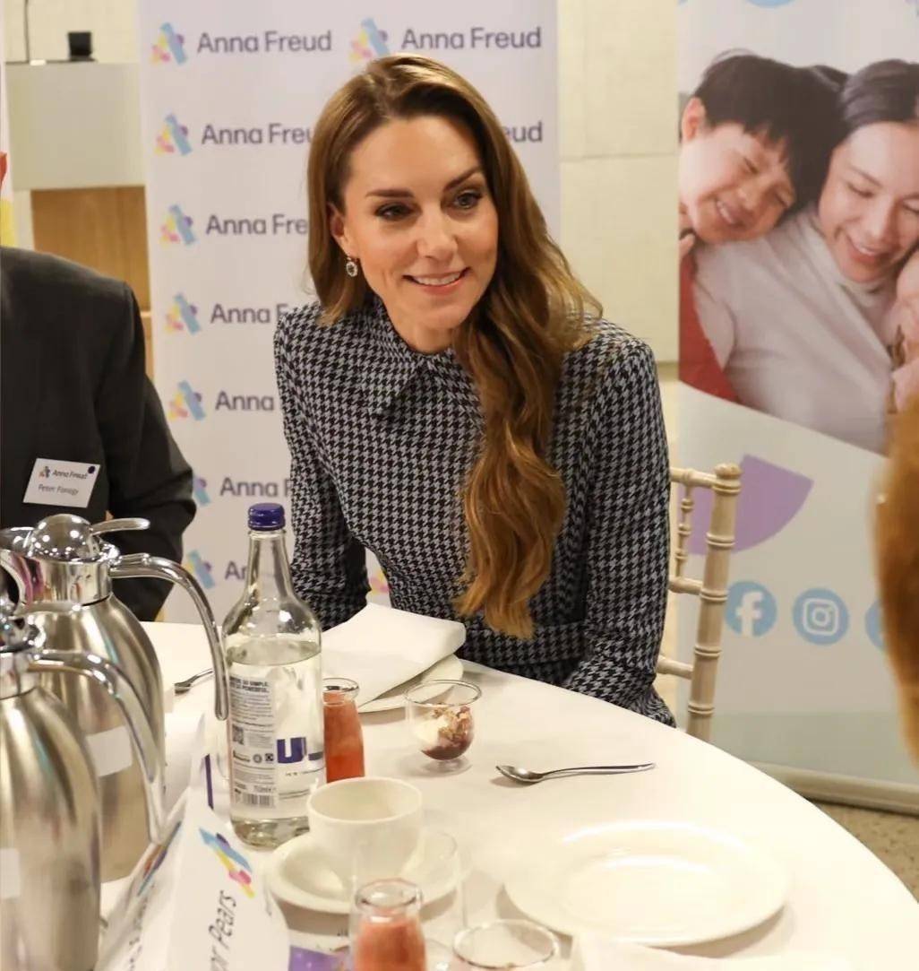 2. 11月27日,凯特以皇家赞助人身份到访安娜·弗洛伊德中心,深入参与关于儿童心理健康的专题讨论。当天她身穿一件经典格纹连衣裙,耳畔佩戴着戴安娜王妃传承下来的蓝宝石耳饰,身形修长纤细,气质高雅挺拔,笑容温婉动人,举手投足间流露出天然的亲和力,令人不禁感叹她是真正的英伦玫瑰典范。